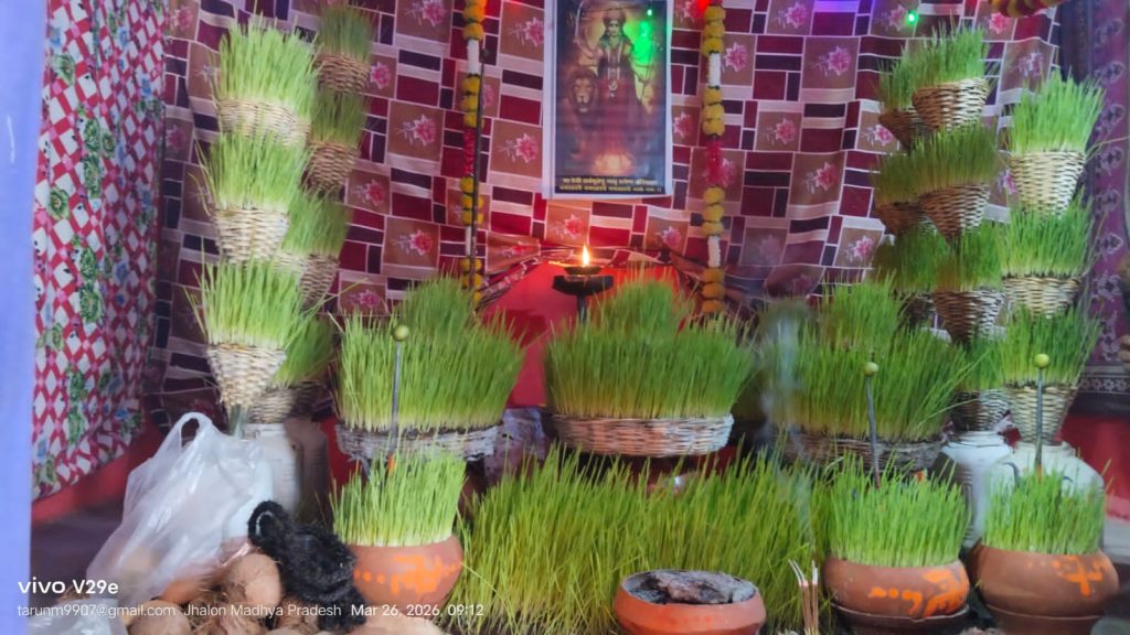सोहागपुर/सेमरी हरचंद। ग्राम झालौन निवासी पत्रकार तरुण मेहरा के आवास पर चैत्र नवरात्रि पर्व के अवसर पर माता के जवारों का भव्य आयोजन किया गया। नवरात्रि की प्रथम तिथि पर विधि-विधान के साथ घटस्थापना की गई, जिसके बाद से पूरे श्रद्धा और भक्ति भाव के साथ पूजन-अर्चन का क्रम जारी रहा। नवरात्रि के इस पावन अवसर पर प्रतिदिन सुबह-शाम माता की आरती, भजन एवं देवी जस का आयोजन किया गया, जिसमें क्षेत्र के श्रद्धालुओं ने उत्साहपूर्वक भाग लिया। पूरे आयोजन के दौरान भक्तिमय वातावरण बना रहा।
