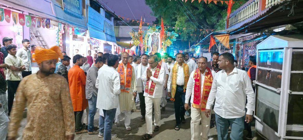 शोभायात्रा का जनप्रतिनिधियों ने पुष्प वर्षा कर किया स्वागत