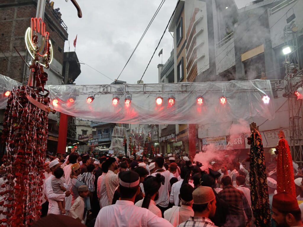 गाडरवारा। नगर में मोहर्रम की 7 तारीख को शाम के समय एक भव्य और शांतिपूर्ण मेंहदी ताजिया अलम का जुलूस निकाला गया। यह जुलूस काजी मोहल्ला से प्रारंभ होकर बंसल वाली गली, चौकी, चावड़ी, महावीर भवन, शक्ति चौक, शिवालय चौक, झंडा चौक होते हुए नया बस स्टैंड बाबली दरगाह शरीफ पहुँचा, जहाँ इसका समापन हुआ।